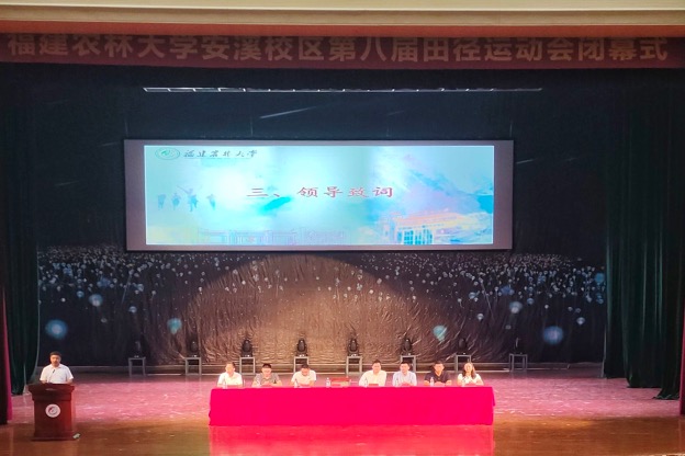 11月22日下午,安溪校区第八届田径运动会闭幕式在校区明德报告厅举行。安溪茶学院党委书记连文,党委副书记黄成茂、李治洲,团委副书记杨小飞,金山学院(安溪)管理办公室主任陈本熠出席闭幕式。安溪县第十二小学党支部副书记刘海滨,安溪铭选中学体育教师李淑敏,获奖运动员及各年级专 业 代表参加闭幕式。闭幕式由金山学院纪委书记鲍振兴主持。