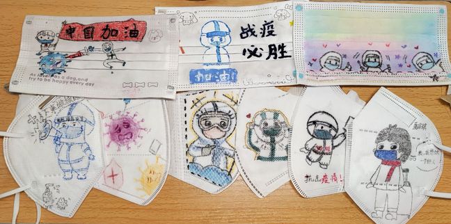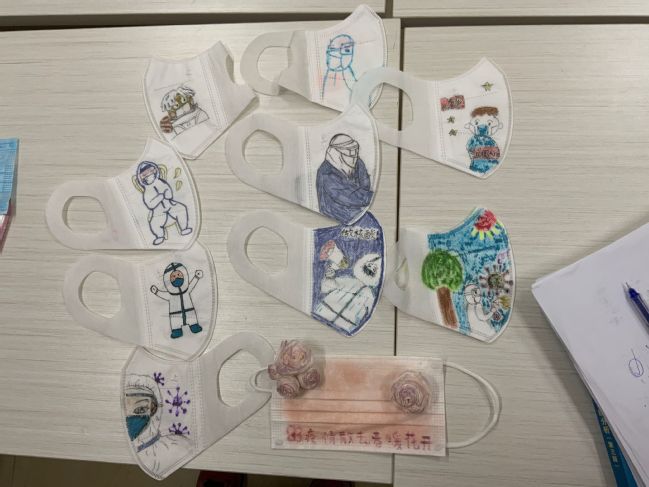 学生们以抗击疫情为主题,用颜料、画笔、彩绘、涂鸦的方式在口罩上进行创作,将疫情中的所见、所闻、所思、所感描绘出来,或有奋战一线的白衣天使,或有齐心抗疫的感人场景,或有春暖花开的期盼……无论是简单朴实的勾勒还是精致繁复的设计,每个作品都体现出旗山校区学子面对疫情时积极向上、不畏艰难的乐观态度,都饱含对疫情早日结束的美好期盼。