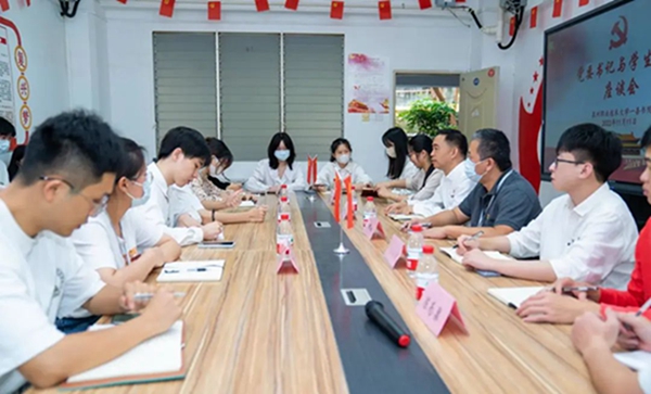 微党课结束后,傅志雄还与部分学生代表座谈,交流学习体会,共同研讨贯彻落实举措。同学们围绕成长成才、返乡助力乡村振兴等话题进行提问,傅志雄通过列举榜样人物、分享身边创业奋斗故事、乡村振兴典型案例等,勉励同学们要能吃苦、肯奋斗,励志成才,到祖国最需要的地方去,参与到全面建设社会主义现代化国家的火热实践中。