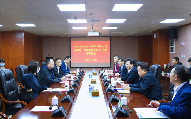 11月30日下午,厦门航空有限公司董事长、党委书记赵东一行莅临我校旗山校区调研指导。校党委书记王建南在综合楼310会议室会见了赵东一行。副校长郑宝东陪同调研。
