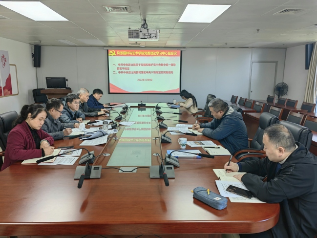 12月8日上午,风景园林与艺术学院党委理论学习中心组在旗山综合楼1102-4会议室召开专题学习会,专题学习了《中共中央政治局关于加强和维护党中央集中统一领导的若干规定》(简称《规定》)和《中共中央政治局贯彻落实中央八项规定的实施细则》(简称《细则》)。会议由学院党委书记雷国铨主持,学院党委班子成员、党政办主任、组织员、团委书记参加会议。