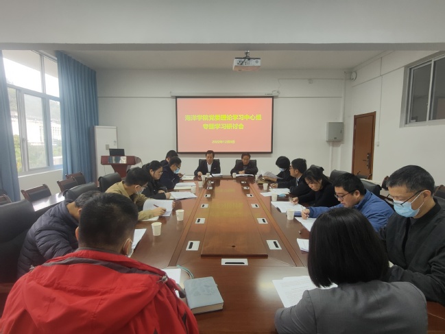 12月8日下午,海洋学院党委在学院会议室召开理论学习中心组专题学习研讨会。校党委宣传部副部长郭联凯到场巡听指导,学院领导班子成员、党支部书记、各教学系(实验中心)负责人、科级干部、辅导员等参加会议。学院党委书记黄毅军主持会议。