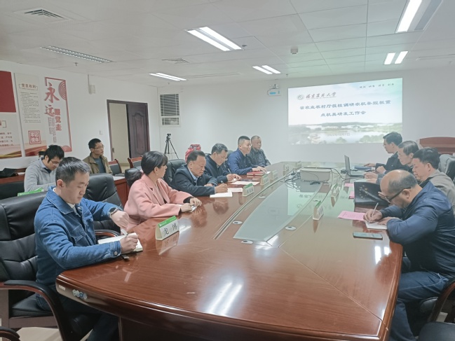郑宝东代表学校对杨斌一行莅校调研农机补短板重点机具研发工作表示欢迎,表示学校将积极发挥学科和人才优势,大力推进农机科研工作,为强化我省农业科技和装备支撑,全面推进乡村振兴加快农业农村现代化贡献学校力量。叶大鹏汇报了机电工程学院的基本概况、科研团队机具研发进展情况以及下一步攻关计划,对推进我省农机补短板重点机具研发工作提出意见和建议。杨斌高度肯定我校开展机具研发工作取得的成效,介绍了我省推进农机补短板重点机具研发科技攻关项目实施情况,表示将全力支持我校开展农机补短板重点机具研发工作,切实解决我省农业产业高质量发展的农业装备需求。