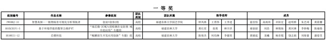 大赛由省工信厅、省教育厅、省人社厅、省商务厅、省科技厅、省总工会、团省委、省中华职教社联合举办,于今年4月份正式启动。大赛分为“公共专题”“就业专题”和“企业专题”三大类,其中“公共专题”包含创新、创意、创业·创客三个组,经激烈角逐,共评出一等奖20项、二等奖40项、三等奖76项。比赛吸引了厦门大学、福州大学、南京理工大学等省内外36所高校学生参赛,我校一等奖数量居各高校首位,获奖总数居第二位。