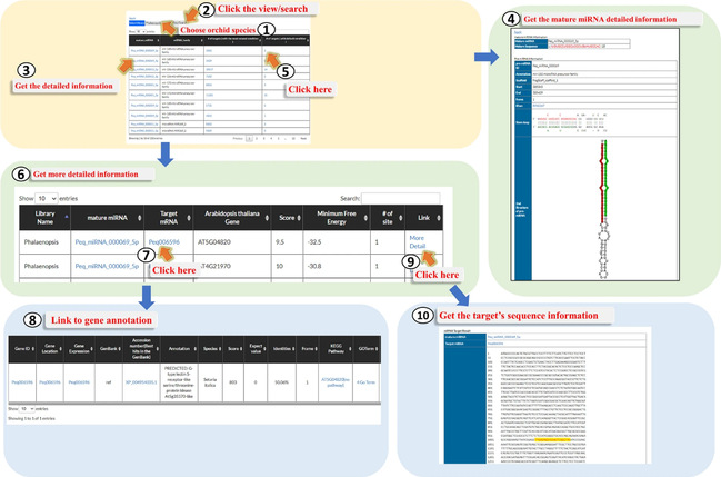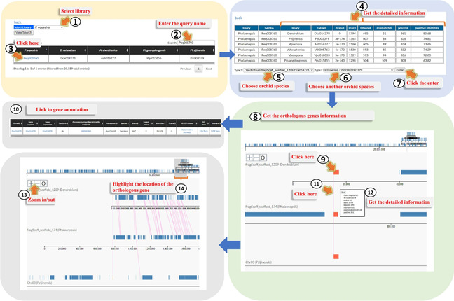 OrchidBase 5.0版本的兰花数据库还开发了三种新工具,包括共线性、基因顺序和miRNA分析,用于兰花基因组比较和miRNA分析。用户可以精确且高效地采用“Synteny”和“Gene order”工具,在5个兰花基因组(小兰屿蝴蝶兰Phalaenopsis equestris,铁皮石斛Dendrobium catenatum、深圳拟兰Apostasia shenzhenica、广东舌唇兰Pl. guangdongensis和紫金舌唇兰Pl. zijinensis)中找到特定的共线性区域。此外,miRNA工具的发布,也会为用户在兰科植物生长和发育中涉及的miRNA功能的研究提供快捷高效的方法。