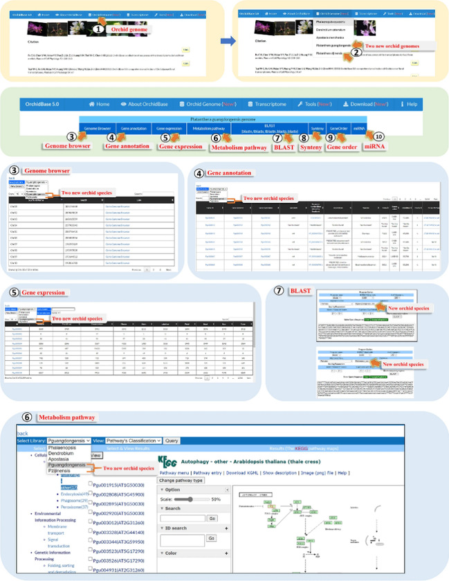 图1 OrchidBase 5.0新增广东舌唇兰和紫金舌唇兰基因组数据