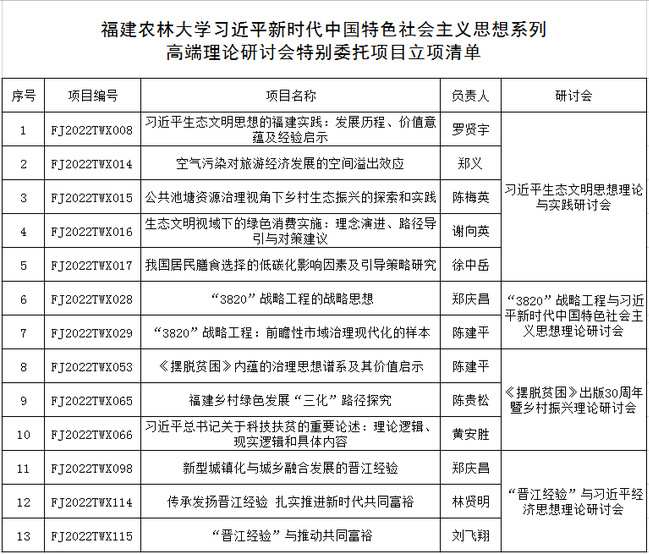 近日,福建省社会科学规划办公室发布《关于将入选习近平新时代中国特色社会主义思想系列高端理论研讨会论文集的专家学者列为省社科基金特别委托项目负责人的通知》,我校共有13项获立省社科基金特别委托项目。
