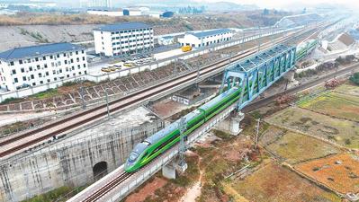 30日,首趟南昌至泉州C879次“复兴号”动车组列车行驶在兴泉铁路清泉段上。本报记者 林辉 通讯员 张海根 摄