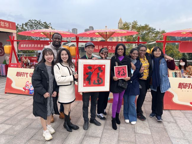 留学生们先后参观了文艺节目汇演、“福”文化快闪馆、灯谜馆、露天观影、美食集市、非遗文创集市、新语心愿、网红打卡等八大功能区,充分了解福建“福”文化魅力和福州城市美学美景。随后留学生们还前往以“福地赋新 时启未来”为主题的“福”文化主题街区,乐享“福”文化。