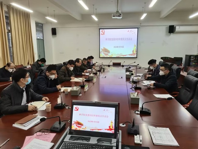 1月10日下午,林学院党委在诚智楼A206教室召开2022年度党员领导干部民主生活会,校2022年度民主生活会第四督导组成员、基建处副处长官文栩,校党委巡察办综合科科长吴雄强莅临指导。学院党委领导班子、非中共党员领导、科级干部、党支部书记代表参加会议,学院党委书记蓝天水主持会议。