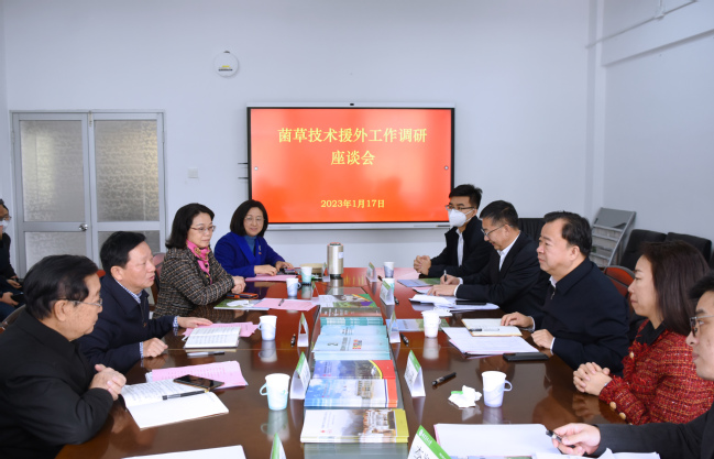1月17日上午,国家国际发展合作署副署长赵峰涛一行莅校调研,了解开云网页版菌草援外项目实施开展情况。校长兰思仁在明德楼13楼会议室会见赵峰涛一行,省政府外事办公室副主任黄劭蓉,国家菌草工程技术研究中心首席科学家林占熺参加会见。