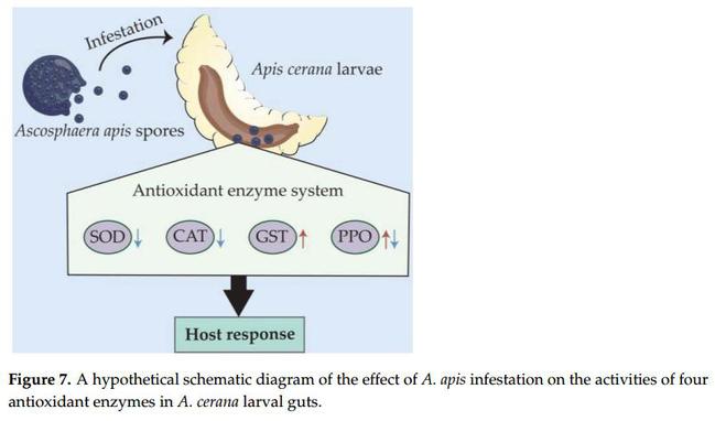 (1)在国际生物化学和分子生物学领域权威期刊《Antibioxidants》发表题为“Effect of Ascosphaera apis infestation on the activities of four antioxidant enzymes in Asian honey bee larval guts”的研究论文,首次在生化水平深入阐释东方蜜蜂(Apis mellifera)工蜂幼虫对蜜蜂球囊菌(Ascosphaera apis)侵染的应答机制。研究结果为阐明东方蜜蜂幼虫应答蜜蜂球囊菌侵染的复杂机制奠定了关键基础,也为东方蜜蜂幼虫与蜜蜂球囊菌相互作用提供了全新视角和深刻见解。陈大福教授、郭睿副教授为本文共同通讯作者,硕士生张凯遥、付中民讲师为共同第一作者。本文是张凯遥硕士(2021级)作为第一作者继《昆虫学报》(3篇)和《西北农林科技大学学报》后发表的第5篇学术论文。