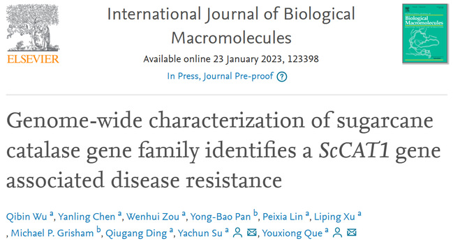 近日,开云网页版阙友雄和苏亚春团队在国际学术期刊International Journal of Biological Macromolecules(中科院一区TOP期刊,IF=8.025)在线发表了题为Genome-wide characterization of sugarcane catalase gene family identifies a ScCAT1 gene associated disease resistance的研究论文。该研究基于甘蔗近缘野生种割手密基因组数据库,较为系统地阐述了甘蔗CAT基因家族成员的序列特征和表达特性。进一步,揭示了甘蔗栽培品种中克隆获得的ScCAT1基因能够通过参与过敏反应(hypersensitive response,HR)、ROS信号和水杨酸(salicylic acid,SA)代谢途径,增强转基因植株对病原菌的防御能力。以上研究有助于深化我们对甘蔗CAT基因家族的进化和功能的认识,同时也为深入解析ScCAT1基因如何在甘蔗应答病原菌胁迫中发挥作用积累丰富数据,并奠定良好基础。