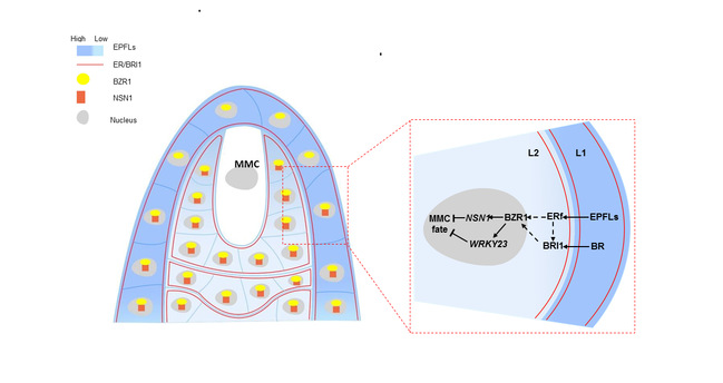图 1. EPFL-ERECTA信号途径调控大孢子母细胞特化的工作模型