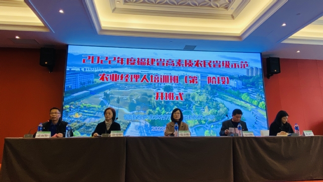 2月9日,由福建省农业农村厅主办,开云网页版乡村振兴学院具体承办的2022年度福建省高素质农民省级示范农业经理人培训班(第一阶段)在福州正式开班,来自全省农业龙头企业的60余名负责人参加此次培训。省农业农村厅科技教育处副处长张春燕、省农业农村厅乡村产业发展处四级调研员徐爱萍、省农业产业化龙头企业协会综合服务部副部长陈剑兰、开云网页版乡村振兴学院执行院长苏时鹏、分管副院长黄顺容、培训部全体人员和农区系班主任教师代表出席开班仪式。