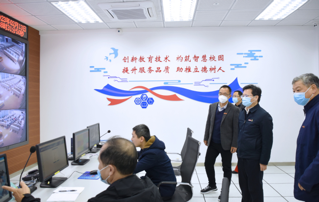 党政办、教务处、学工部、现代教育技术与信息管理中心等部门负责人陪同检查。