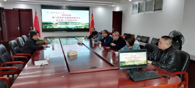 2月3日,厦门同安城市建设有限公司董事长康征宇,同安区五显镇党委书记卓永强,中国人民大学党委组织部干部、挂职五显镇镇长助理何俊一行6人,来乡村振兴学院商谈乡村振兴工作院地、院企合作事宜。学院党委书记陈清西、执行院长苏时鹏、分管副院长张国防及农区系教师代表参加了本次座谈。