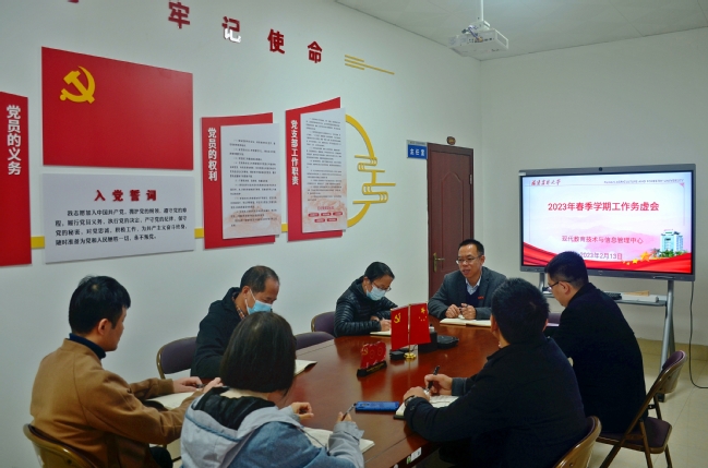 2月13日,信息中心召开会议贯彻落实学校2023年春季学期工作会议暨“深学争优、敢为争先、实干争效”行动动员部署会精神,谋划新学期工作,立足“五个坚持”,力争在重点信息化项目上取得新突破,实现2023年智慧校园建设开门红、数字校园建设新跃升。中心主任曾海滨主持会议,各科室负责同志参加。