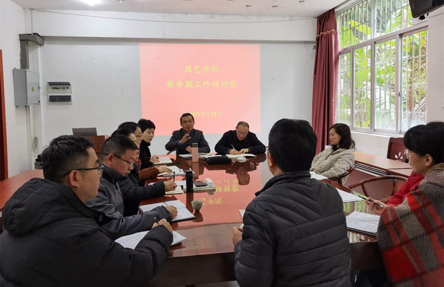 2月15日,园艺学院在学院一楼会议室召开新学期工作研讨会,学院党政领导班子,教授委员会主任、院工会主席、各系部所负责人参会。会议由学院党委书记余顺兴主持。