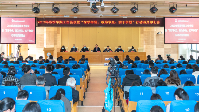 院党委常务副书记孙思惟传达学习了学校2023年春季学期工作会议暨“深学争优、敢为争先、实干争效”行动动员部署会主要精神,提出贯彻落实要求。一是深学争优,加强理论武装,认真学习贯彻党的二十大精神,对标对表学校党建和思想政治工作守正创新“八大工程”任务要求,推动学院党建和思想政治工作全面进步、全面过硬,把落实党的二十大精神转化为工作实效。二是敢为争先,聚焦学院发展大局,推动党建与业务深度融合、推进评价改革、推进院系二级管理改革、探索多元办学途径,突破办学资源瓶颈,推动改革创新落地见效。三是实干争效,强化作风建设。落实能上能下机制推动作风转变,坚持问题导向,目标导向,进一步推进任务项目化、项目清单化、清单责任化,切实推动各项工作落地见效。四是师生至上,守好安全底线,严格落实意识形态主体责任,加强网络舆论正面引导教育,落实安全稳定各项任务,全力确保学院大局稳定。