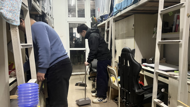 从床铺到地板,从窗台到柜面,大家都认真清扫,仔细擦拭。在各年级辅导员的带领下,大家分工明确,对寝室卫生死角进行全面清理,做到室内干净整洁无异味,地面无污渍、无纸屑、无杂物,个人物品摆放整齐,被品摆放方向一致,为新学期营造了整洁、优美、温馨、文明的宿舍环境。