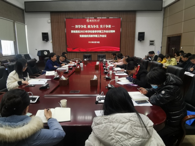 会议传达了学校2023年春季学期工作会议暨“深学争优、敢为争先、实干争效”行动动员部署会议精神。会议要求全体组织员要认真学习领会,贯彻落实2023年春季学期工作会议上校党委书记王建南对党建工作提出的“八抓”工作要求和校长兰思仁部署的八个方面重点工作,坚持以习近平新时代中国特色社会主义思想为指导,以学习贯彻党的二十大精神为主线,以“深学争优、敢为争先、实干争效”行动为契机,争当“优等生”“先行者”“实干家”。会议紧紧围绕贯彻落实2023年春季学期工作会议精神,对2023年度党建工作重点任务和新学期工作要点进行了工作布置,明确提出工作要求。
