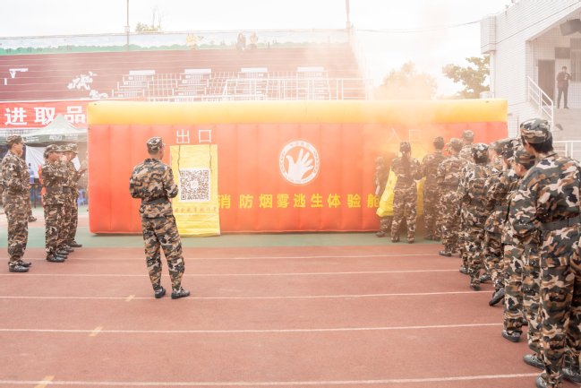 保卫处消防科有关同志为同学们讲解了火场逃生的技巧,组织同学们分组有序进入消防烟雾逃生体验舱,高质量完成了烟雾逃生体验。