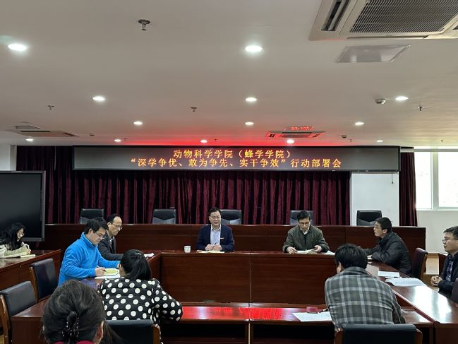 2月23日下午,动物科学学院(蜂学学院)在学院会议室召开“深学争优、敢为争先、实干争效”行动动员部署会。学院领导班子成员、党支部书记、教学系负责人、科级干部、辅导员等参加。会议由学院党委书记陈为德主持。