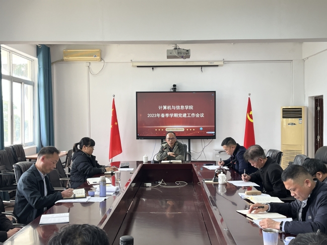 2月23日下午,计算机与信息学院党委在302会议室召开2023年春季学期党建工作会议,学院党委委员、党支部书记参加了会议,会议由学院党委书记钟一文主持。