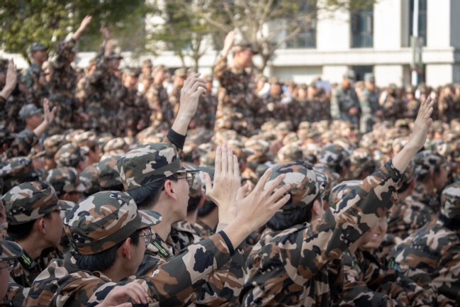 近日,机电工程学院于旗山校区2022级学生军训操演现场开展“辅导员面对面”活动。学院党委副书记杨莹、2022级辅导员陈龙、张宇昂一同出席本次活动。