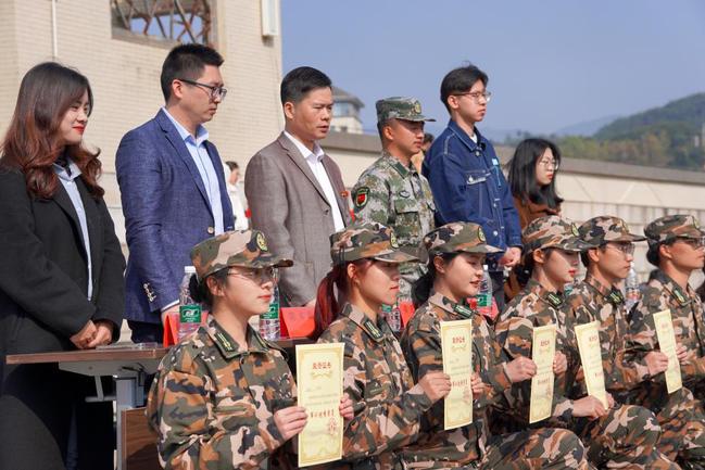 伴随着激昂雄壮的国歌,升国旗仪式正式开始。全体学员用整齐的队伍,威武的军姿,昂扬的斗志,响亮的口号展示出十四天来的训练成果,很好地完成了军训汇报演练。黄成茂、陈本熠、庄思楷分别宣读了先进集体和优秀辅导员,文明宿舍、优秀学员,优秀学生教官名单并颁发奖状。