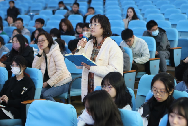 在交流提问环节中,同学们积极踊跃发言,整体氛围活跃融洽。同学们就个人发展与乡村振兴背景下的学术理论、调查研究与实践锻炼与温铁军进行了探讨与交流,也向温铁军请教在日常学习中遇到的困惑与不解,温铁军耐心询问实际情况并一一作出回应与解答。温铁军勉励大家要勤于思考,努力提升自己,在学术与实践中不设限、敢突破。通过交流传递出同学们对知识的渴望,许多同学在发言中都表示对乡村振兴事业充满热情与抱负。