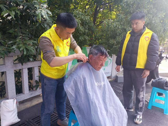 开展爱心义剪服务活动。同学们身着黄色马甲,根据前期摸排的居民需求,备好理发工具,集中为老人们提供义剪服务。对于行动不便的老年居民,提供上门服务,“我腿脚不好走不了远路,你们特意到小区里为我理发,谢谢你们!”刘奶奶紧握着志愿者的手,不断致谢。同学们用自己的实际行动传递和践行着雷锋精神,成为小区里一道传递温暖的靓丽风景线。
