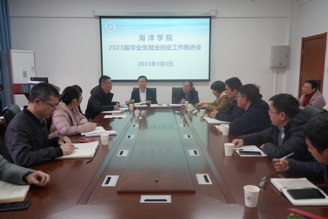 3月3日下午,海洋学院在学院501会议室召开2023届毕业生就业创业工作推进会。学院全体教师参加,会议由学院党委书记黄毅军主持。
