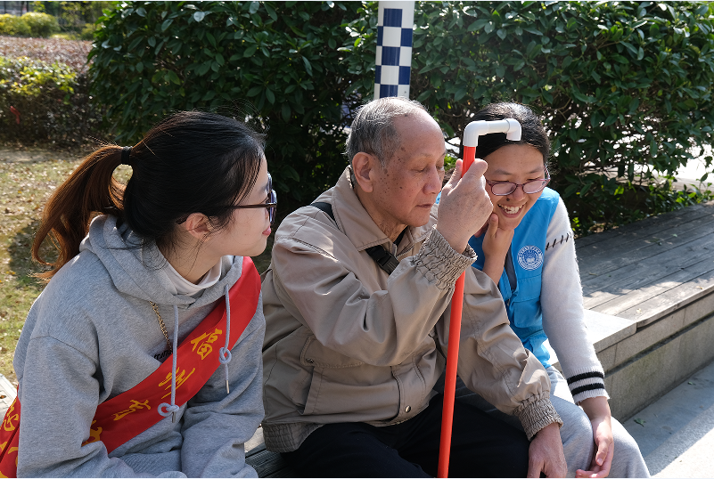 志愿者与视障人士聊天