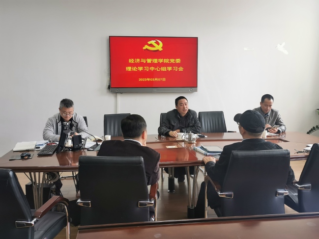 3月7日上午,经济与管理学院党委理论学习中心组专题学习两会精神,院党委理论学习中心组成员参加,院党委书记张开晃主持。