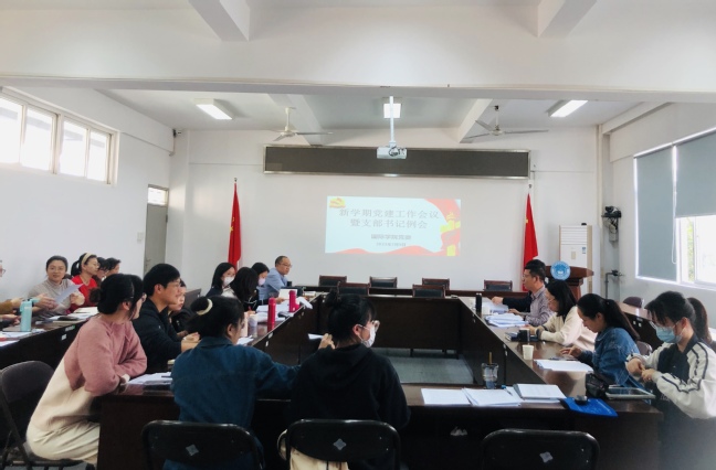 3月9日下午,国际学院党委召开新学期党建工作会议暨党支部书记例会,院党委委员、党支部全体委员参加会议,院党委书记林平主持会议。