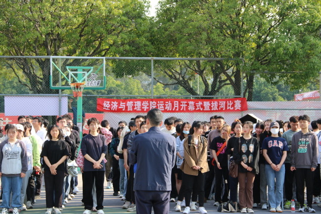 3月11日下午,经济与管理学院在北区篮球场举办“点燃体育激情,书写青春张扬”主题运动月开幕式暨拔河比赛。院党委副书记李健英,院团委书记赵伟豪,辅导员肖培林、潘荣艺、李舒婷出席开幕式,来自学院各年级共15支队伍,176名运动员共同参加本次运动月开幕式暨拔河比赛。