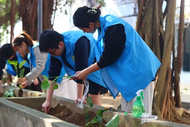 3月11日下午,金山校区植树节志愿活动在桃三宿舍楼前火热开展。志愿者们充满热情与干劲,或手执锄头,除草松土;或手握花苗,填坑浇水;为桃三宿舍楼前花圃种上新植物添置新木牌。各项DIY手工活动也如火如荼,“一起绘花瓶”追寻春天的足迹;“布料扎染”记住春天的美好;“咕卡DIY”传播春天的讯息;“围炉煮茶”与春风共品一杯茗;“绿植领养”把春意留在身旁;“对花啜茶”诉说春天的故事。