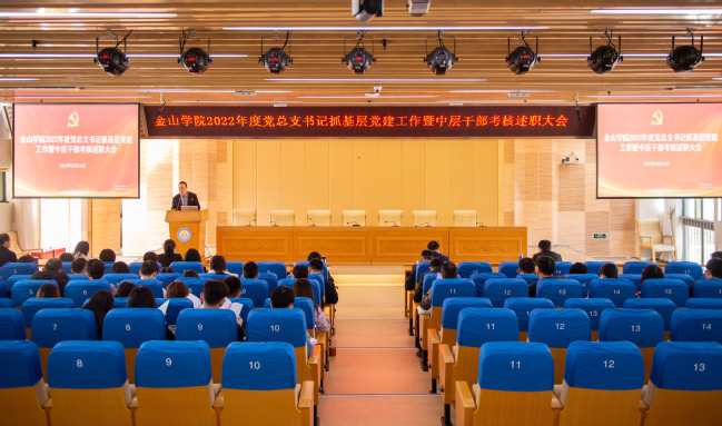3月14日,金山学院于金综楼13层学术报告厅召开2022年度党总支书记抓基层党建工作暨中层干部述职测评大会。院领导、全体中层干部、全体党支部书记参会。会议由院党委常务副书记孙思惟主持。