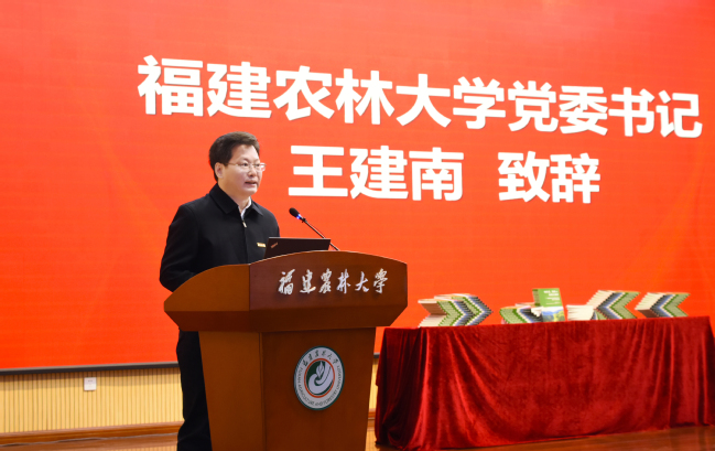 王建南代表学校致辞。他表示,新时代新征程,学校将始终不渝坚持以习近平新时代中国特色社会主义思想为指导,充分发挥学科和人才优势,在学习宣传、研究阐释、贯彻落实上下更大功夫,以立德树人为根本,以强农兴农为己任,把论文写在田野大地上,更好地服务全面推进乡村振兴,加快推进农业农村现代化,为奋力谱写中国式现代化福建篇章作出更大贡献。