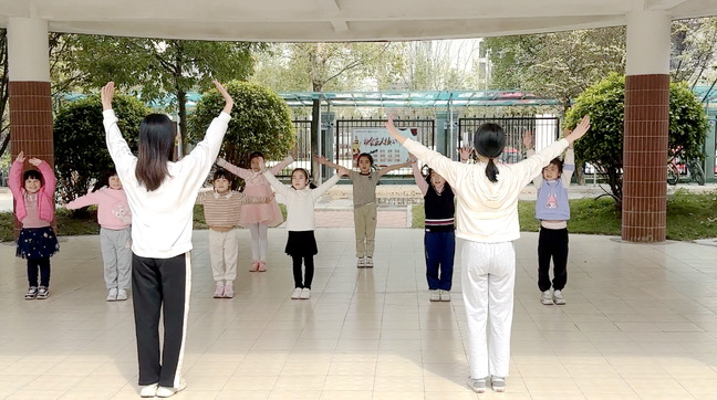 在活动现场,志愿者们结合小朋友们的年龄特点和理解能力,将复杂的舞蹈动作进行改编重构,用孩子们喜闻乐见的方式引导他们在玩中学,在生动活泼的情景体验中寓教于乐,取得了良好成效。