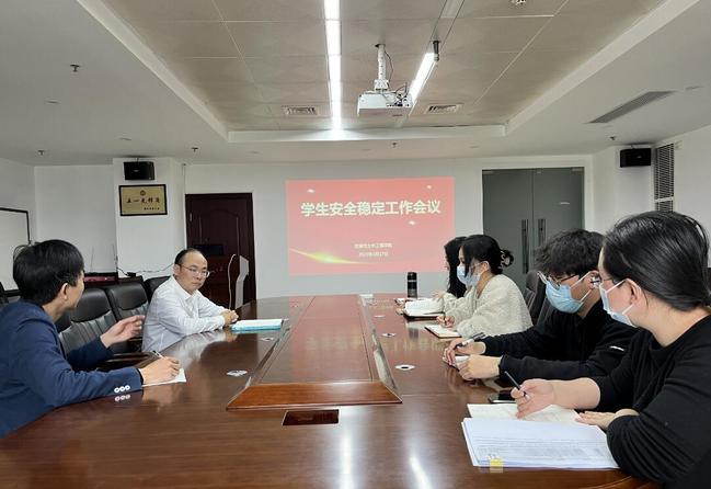会议指出,全体政工干部要进一步强化思想认识,扛起政治责任,从讲政治、讲大局的高度出发,做好日常安全管理和教育工作,守住校园安全稳定底线。会议强调,要做好校园安全稳定调查研究基本功,通过“辅导员面对面”、走访宿舍、谈心谈话等方式,转变工作作风、密切联系学生、提高履职本领、强化责任担当,及时发现、处理风险隐患;要善于分析问题本质,勤于创新工作方法,科学制定处置预案,做到未雨绸缪,防微杜渐,有效应对安全稳定工作中出现的新情况、新问题;要进一步守好意识形态阵地,保障宣传平台有序管理,强化校园舆论环境管理,利用线上线下传播载体弘扬主旋律,传播正能量,通过润物无声的思想政治工作化解矛盾、维护稳定。