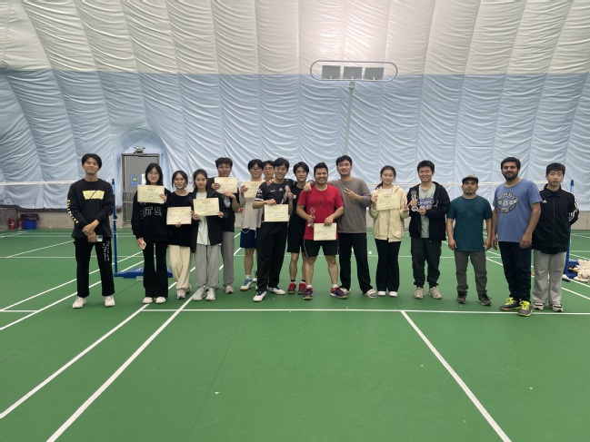 本次比赛共设男子单打、女子单打、混合双打三项比赛,参赛选手们积极奋战,比赛中努力拼搏,经过激烈的比赛,男子单打冠军为留学生Ahmad Ali,亚军为陆胤,季军为郑嘉彬;女子单打冠军为张欧希,亚军为马洁莹,季军为寇嘉文;混合双打冠军为曹黄熙睿、秦梓萌组合,亚军为张家崭、邵之璇组合,季军为吴伯远、赵文瑞组合。