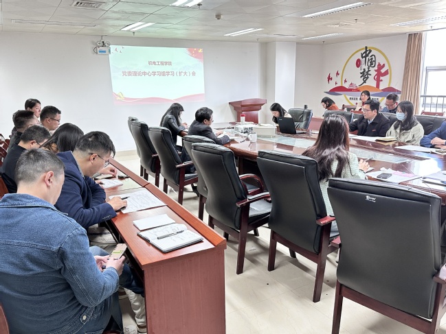 3月7日上午,机电工程学院召开党委理论学习中心组学习(扩大)会,认真学习了习近平总书记在学习贯彻党的二十大精神研讨班开班式上的重要讲话精神和2023年全国“两会”精神。会议由学院党委副书记杨莹主持,学院理论中心组成员、科级干部、系(中心)主任、党支部书记、辅导员等参加。