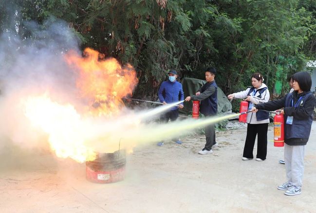武装部(保卫处)工作人员详细讲解了日常生活中如何预防火灾以及火灾发生后如何正确处置,如何正确使用灭火器、消防栓等基础消防设施展开自救、互救和逃生等知识技能。在讲解完灭火器的使用方法和注意事项后,纠察大队学生轮流按照“提、拔、握、压”的动作要领,迅速跑向火源,对准火焰根部有效扑灭明火,顺利完成灭火器实操演练。