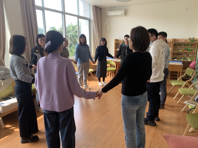 辅导员们通过“松鼠与大树”“心有千千结”“一封感谢信”等活动,沉浸式体验心理团体辅导活动。在体验环节中,陈珊老师重点穿插讲述了团体辅导的注意点及应对方法,针对辅导员在带领学生团体辅导中可能遇到的难点进行讲解,强调团体辅导活动要积极营造团体温暖氛围,注意团体初建的规则,彼此尊重、不评价、不批评、不分析,学会倾听、懂得接纳。活动中,辅导员们还就日常心理育人工作中团体辅导活动经验及遇到的困惑展开交流。