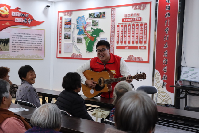 与老人共唱红歌