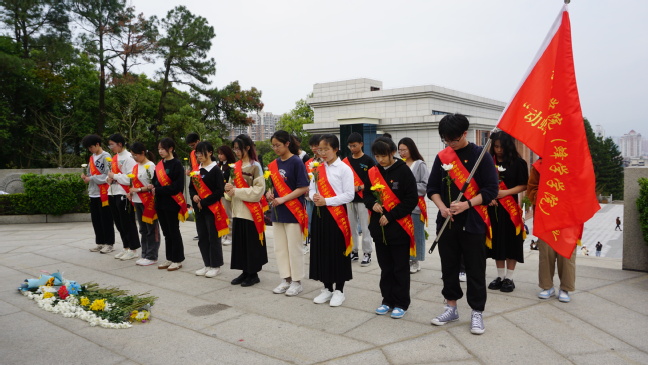 在革命烈士纪念碑下,师生代表分批次向纪念碑敬献花圈,默哀一分钟,献上菊花,并绕行纪念碑一圈,瞻仰烈士纪念碑,向革命先烈表达自己深深的缅怀之情。随后同学们在陵园内的福州市革命英烈事迹陈列馆参观学习,认真回顾了福州籍英烈们为民族复兴、国家富强进行的艰苦奋斗事迹。同学们纷纷表示,要铭记英烈功勋,传承英烈精神,让革命精神代代相传。