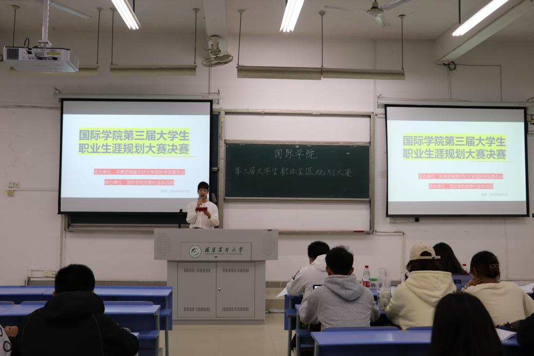 4月7日晚上,国际学院在禧强楼107教室举办第三届大学生职业生涯规划大赛决赛。福州九色鹿培训学校招聘经理陈玲、金山学院黄瑞章老师和材料工程学院辅导员郭炳春担任本次大赛的评委。学院团委书记王庆丰、辅导员周燕华及各年级学生代表共150多人参加本次活动。